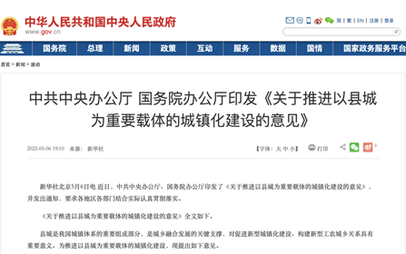 5月6日,中共中央辦公廳、國務(wù)院辦公廳印發(fā)《關(guān)于推進(jìn)以縣城為重要載體的城鎮(zhèn)化建設(shè)的意見》并發(fā)出通知,指出推...